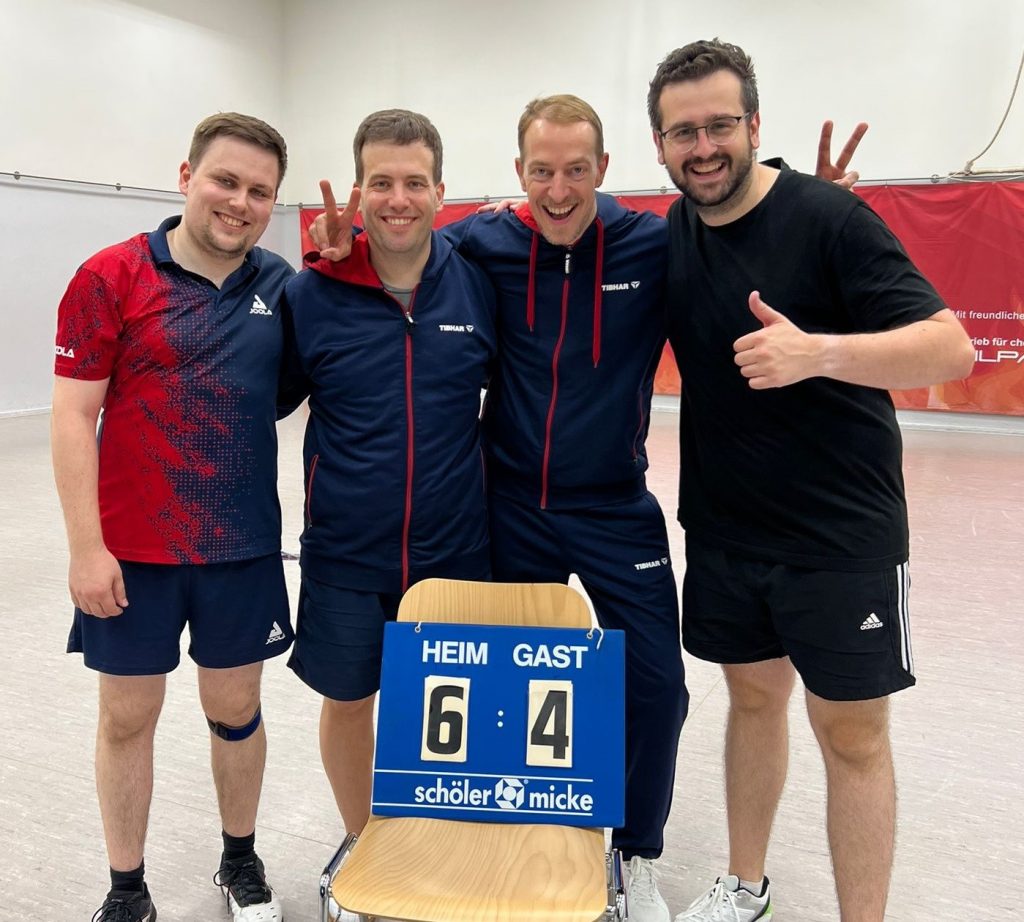 Saisonende – oder doch noch nicht? Die erste Mannschaft des TTV Leutershausen hat eine wilde Achterbahnfahrt erlebt in den vergangenen Wochen. Die Verbandsklasse Nord mausert sich zur Liga der Überraschungen. So muss der TTV auch nach dem hohen Sieg am letzten Spieltag abwarten, ob eine Relegation gespielt werden muss oder sogar der direkte Klassenerhalt möglich ist. Dazu kam am späten Samstagabend auch noch ein Glücksmoment hinzu. Aber dazu gleich mehr, denn zunächst mussten die Heisemer schließlich gegen den TTV Mühlhausen II antreten. Das Hinrundenspiel endete 1:9 aus Sicht des TTV, wobei die Mannen ohne Christian Förster antraten. In der Rückrunde lief es für die Heisemer bestens gegen eine durchaus sympathische Gäste-Truppe. Schon nach den Doppeln führte der TTV Leutershausen 3:0, wobei nur das Doppel drei Kristijan Cule/Daniel Stiben in den fünften Satz ging. In den Einzeln legte Förster nach und erhöhte auf 4:0. Becker musste sich nach langer Trainingspause knapp im fünften Satz geschlagen geben (9:11), aber für den TTV war das eine verschmerzbare Niederlage, denn es sollte die einzige an diesem Samstag bleiben. Alle anderen Einzel gingen an die Hausherren, wobei lediglich Tim Trobisch und Cule noch einen Satz abgaben. Bemerkenswert waren die Auftritte von Christian Schwalbe und Stiben. Ersterer spielt seit Wochen auf einem hohen Niveau konstant gut, letzterer setzte einen Statement-Sieg gegen Routinier Gerd Werner. Letztlich war es an Förster, die Partie zu beenden und den 9:1-Sieg einzufahren. Bei bestem Wetter ließen die Heisemer gemeinsam mit den Familien und den Gästen aus Mühlhausen den Tag ausklingen. Es war das letzte Saisonspiel, vorerst… Das Warten auf die Schluss-Tabelle Der TTV Leutershausen muss noch abwarten, denn am kommenden Wochenende spielt der TTV Weinheim-West noch in Külsheim beim Tabellenzweiten. Wenn Weinheim-West verliert, haben Förster und Co. den Klassenerhalt ohne Relegation geschafft, was in der Premieren-Saison in der durchaus als starke Liga zu bezeichnenden Verbandsklasse Nord ein toller Erfolg wäre. Spielt Weinheim-West in Külsheim unentschieden oder mehr, muss der TTV Leutershausen in die Relegation. Den Glücksmoment des Abends gab es am Samstag als die Nachricht eintraf, dass der SV Niklashausen II die Partie bei St. Pius geschenkt hat. So wäre für die Heisemer sogar der direkte Abstieg durchaus noch möglich gewesen, wenn nur ein Punkt weniger auf dem Konto stehen würde. Ein Pius-Sieg, der so nicht zu erwarten war, sorgte dann dafür, dass die Heisemer nochmal auf eine spannende Saison zurückblickten und viele enge Spiele nochmal resümiert wurden. Nun heißt es abwarten in Leutershausen – und hoffen, dass die anstehenden Spiele fair über die Bühne gehen. Dann wird sich zeigen, ob der TTV Leutershausen die Saison beendet hat oder noch zwei Relegationsspiele (Wochenende 9.-11. Mai) ausstehen.