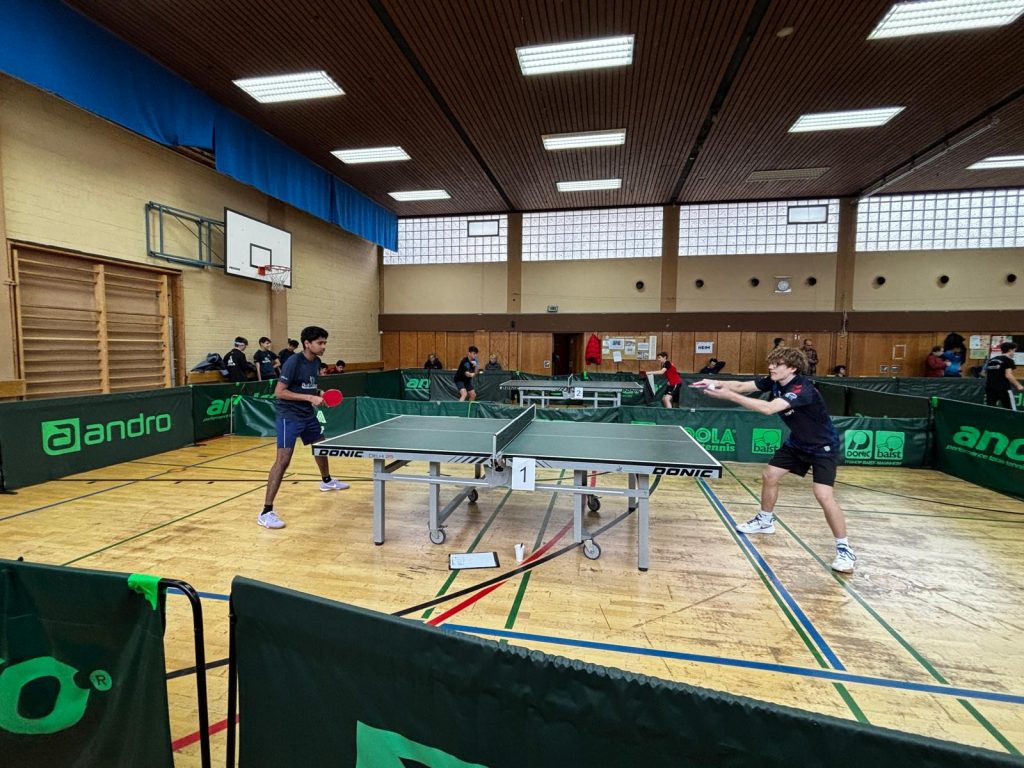 Am Samstag traten Max Gerstenberger (U15) und Samuel Barry (U14) an, Sonntag waren dann Florian Schlegel und Aaron Döbele (beide U19) an der Reihe. Die Älteren hatten das schwere Los gegen viele andere Jugendliche zu spielen, die bereits mehr Erfahrungen gesammelt haben. So war es für Aaron die erste Spielpraxis an diesem Sonntag. Der Debütant zeigte gute Ansätze, musste sich aber geschlagen geben in seiner Gruppe. Auch Florian zeigte gute Leistungen, hatte aber mit den Gegnern und dem teilweise unorthodoxen Material zu kämpfen. Am Ende mussten beide TTV-Youngster ohne Sieg die Heimreise antreten. Dennoch war es ein guter Vergleich mit Gleichaltrigen, der Florian und Aaron zeigt, wo die Reise hingehen muss.