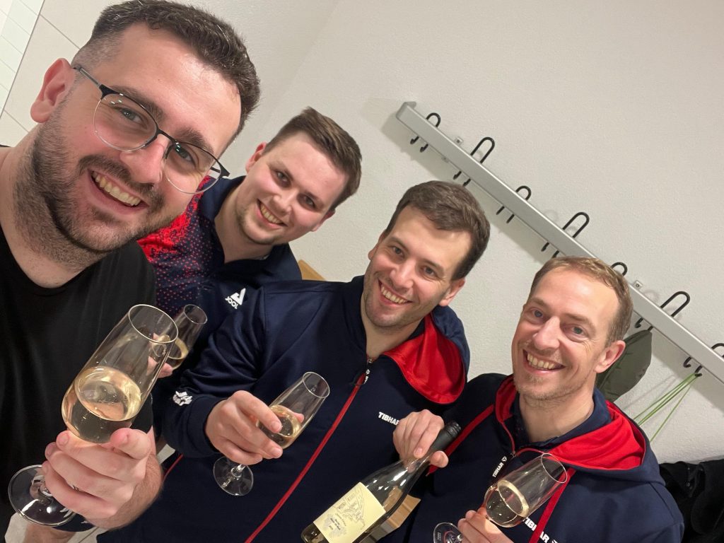 In Adelsheim angekommen taten sich Christian Förster und Tobias Becker zunächst schwer im Doppel, gewannen dann aber in vier Sätzen. Trobisch/Schwalbe ließen nichts anbrennen und holten den Sieg in vier Durchgängen. Die Einzel sind schnell erzählt, denn der SV Adelsheim II trat auch noch mit Ersatz an. Förster, Becker und Trobisch verloren je einen Satz, Schwalbe behielt die weiße Weste. Am Ende steht ein ungefährdeter 10:0-Sieg für den TTV Leutershausen, der zusammen mit der erfolgreichen Dissertation von Tim Trobisch noch in der Kabine gefeiert wurde. Auf der Rückfahrt richtete sich der Blick dann auf den Samstag. Den Tag der Weihnachtsfeier und dem wichtigen Spiel gegen den TTC Ketsch…